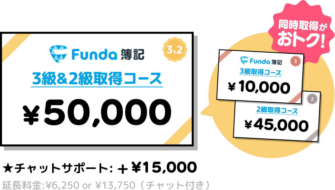 もし3級取得も検討されている方は合わせて取得できる3級&2級コースだと【¥5,000】お得になります